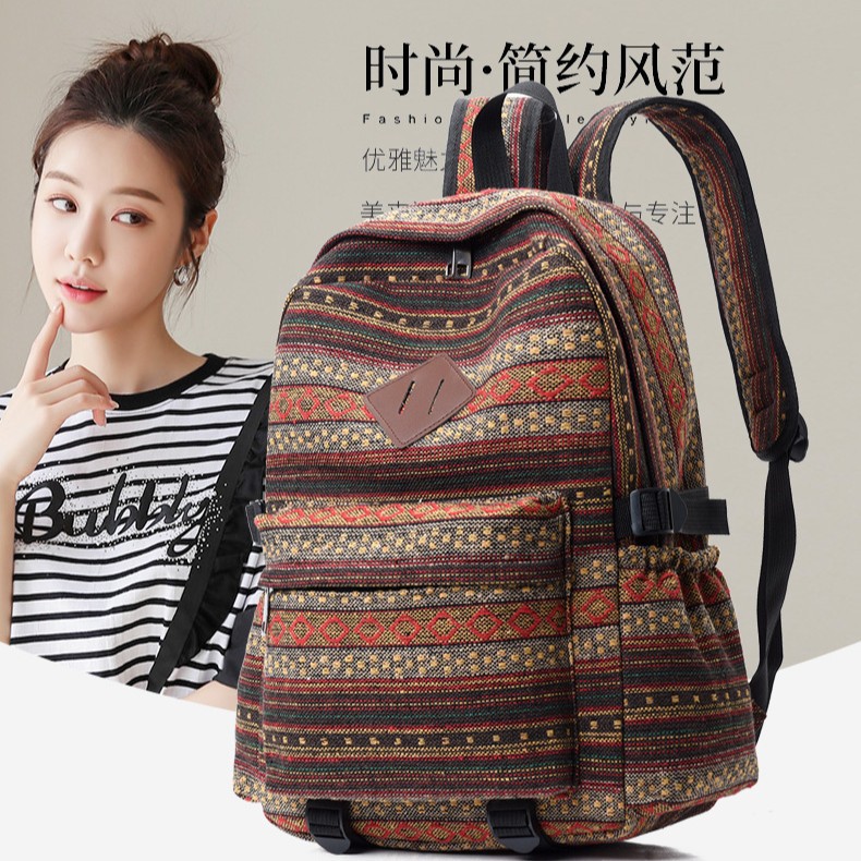 ファッションファッションカラーストライプかばんシンプル民族風青年男子学生通勤買い物授業ランドセル