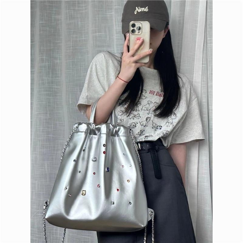 韓国の小衆銀色の宝石のリュックサックは簡単です。