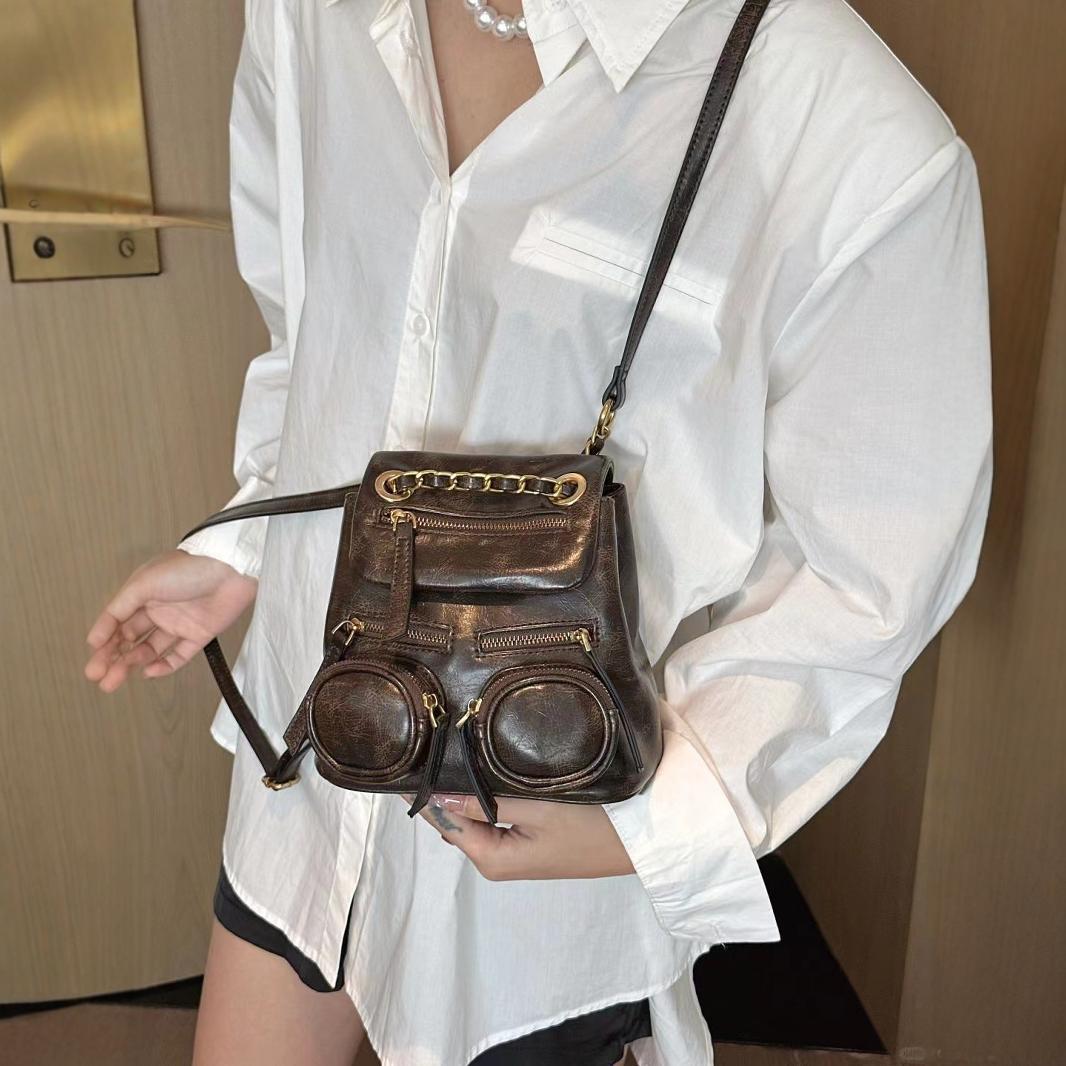 シングルショルダーバッグ女性2024新型レトロ斜めショルダー短距離旅行小リュックサックファッションミニ手提げ学生カバン
