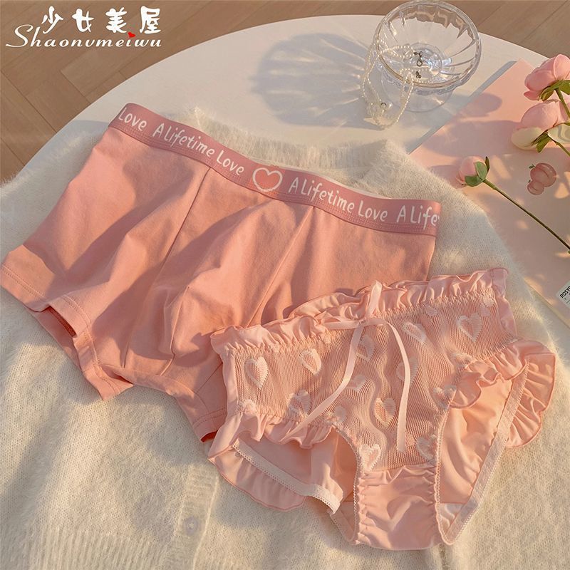 心に属する男性と女性のピンクのカップル下着純綿男性パンツレースセクシーな純粋な欲望の女性