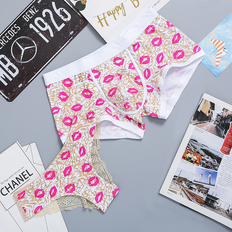 カップル下着純綿かわいい男性と女性の赤い唇シンプルな女の子三角形メンズボクサーパンツのペアセット