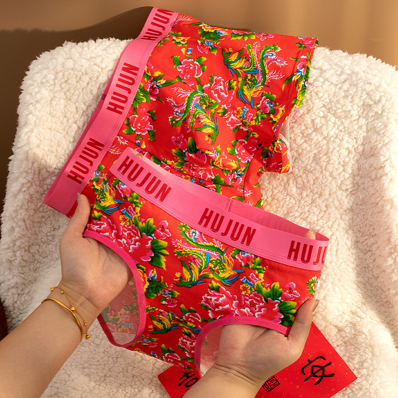 【包郵便】カップルのお祝いの平安喜び男性女性カップル下着一男一女結婚赤い下着