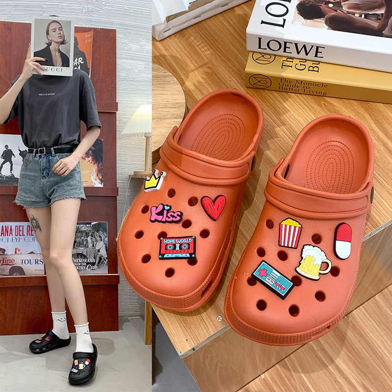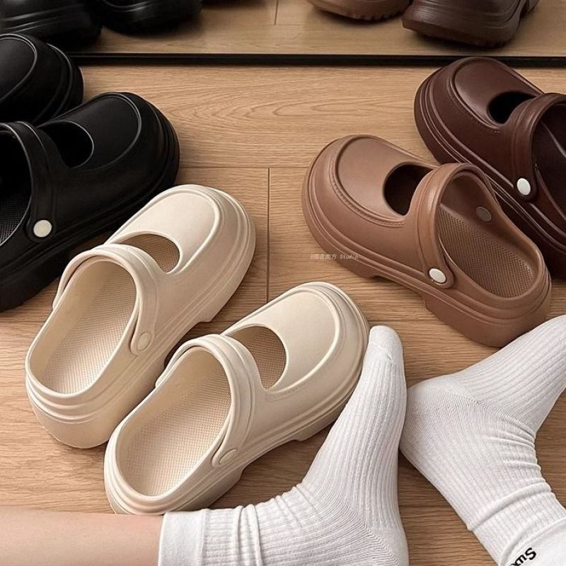 厚底ファッション包頭ハーフスリッパ レディース 外履き 2025春秋新作 厚底穴あきシューズ 多用途 ラジースリッパ