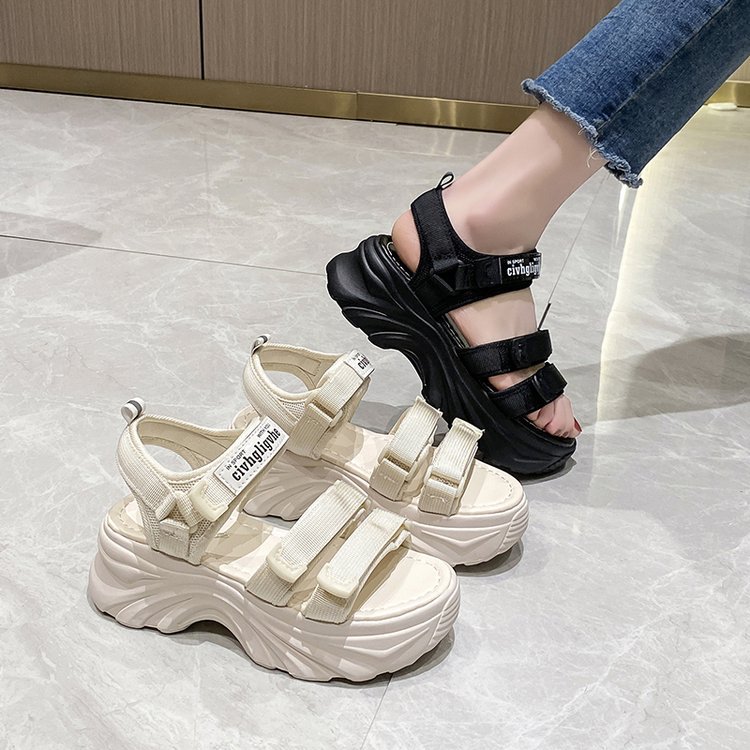 ベルクロビーチサンダル女性のための 2025 夏韓国スタイルプラットフォーム厚底女性の靴ファッション学生カジュアルスポーツサンダル