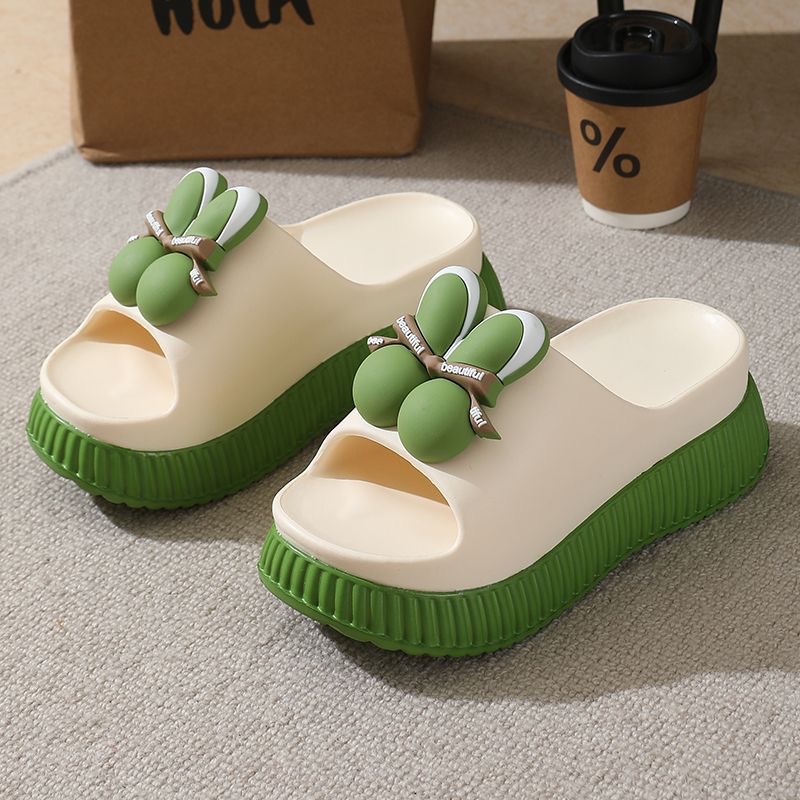 厚底ファッション高さ増加スリッパ蝶結びダブルカラーマッチングノンスリップスリッパ女性のビーチファッションアウターウェアサンダル卸売