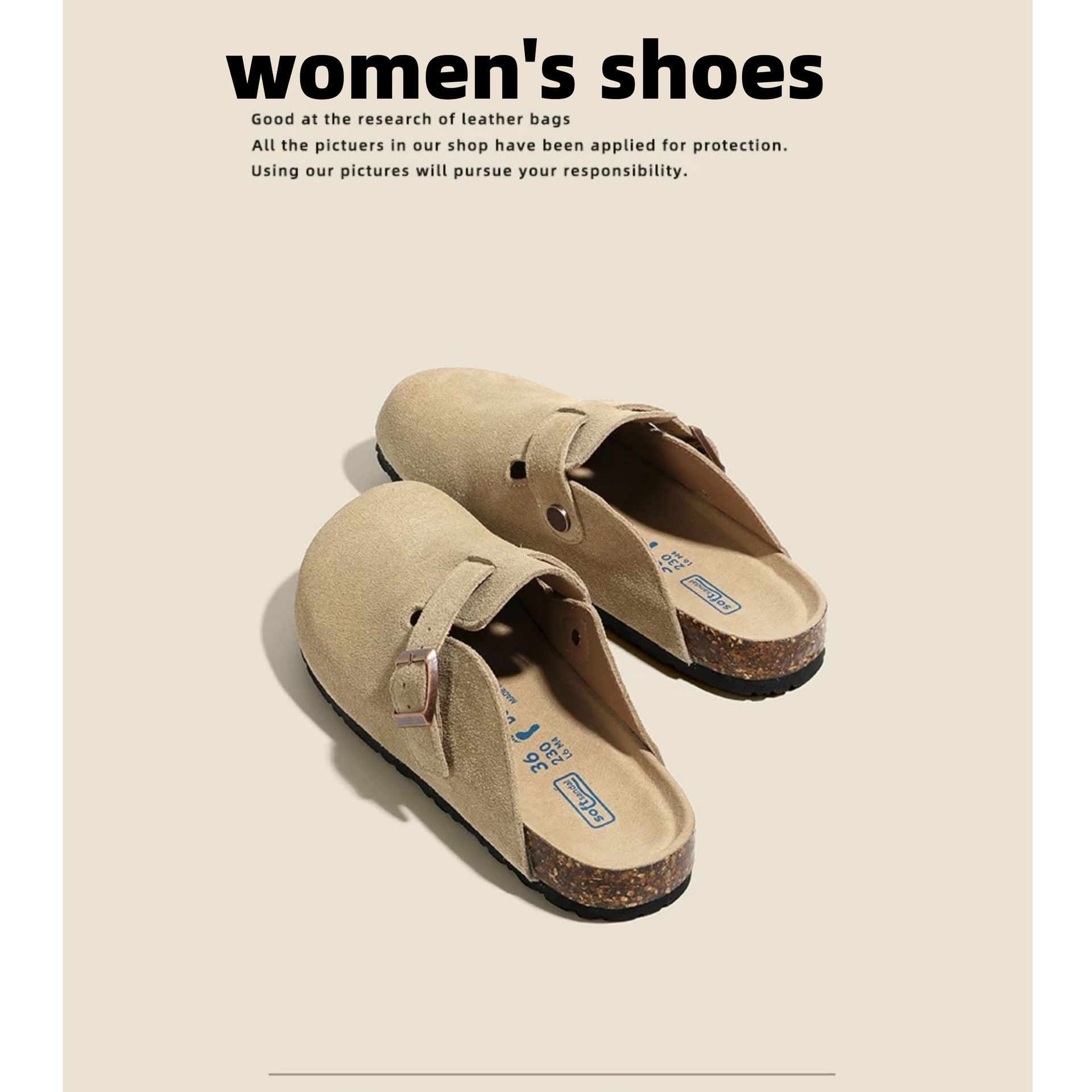 BK本革ベーケン靴男女同タイプのコルク底レトロ包頭半引き快適百合怠惰人靴平底冷引き