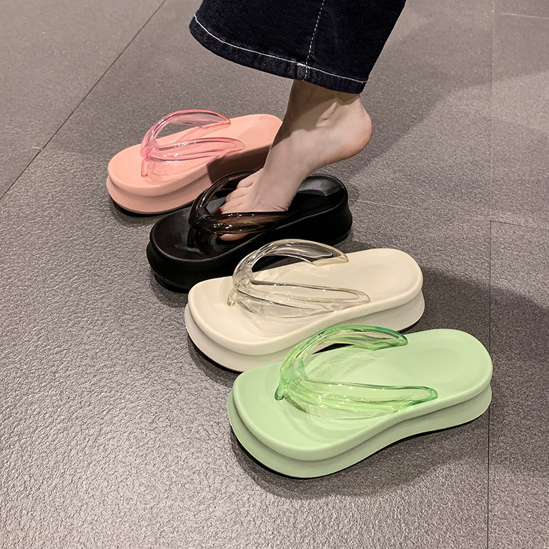 厚い底のハイヒールの女性は2025春夏の新型の海辺のビーチサンダルを履いて糞感を踏んで足を挟むスリッパを履いています。