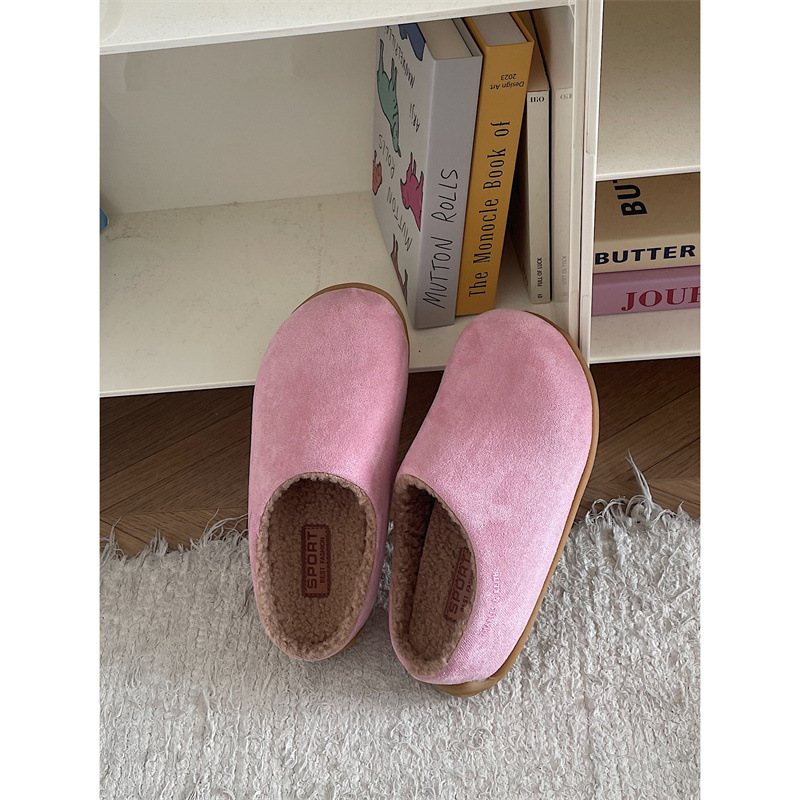 保温通気性が快適なベルベットの足で包頭を漕ぐ女性2024秋冬の新しいレトロな学生のカジュアルな綿のスリッパ