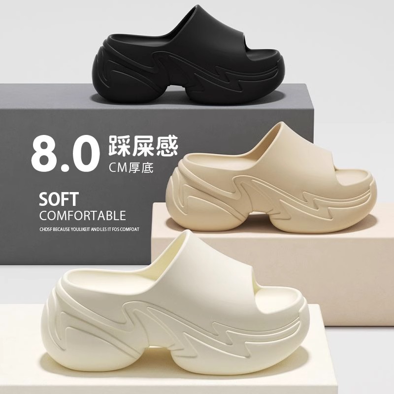 8.0 女性用夏用スリッパ、新しいスタイル、滑り止め、赤外線、小柄な人向けの厚底スリッパ