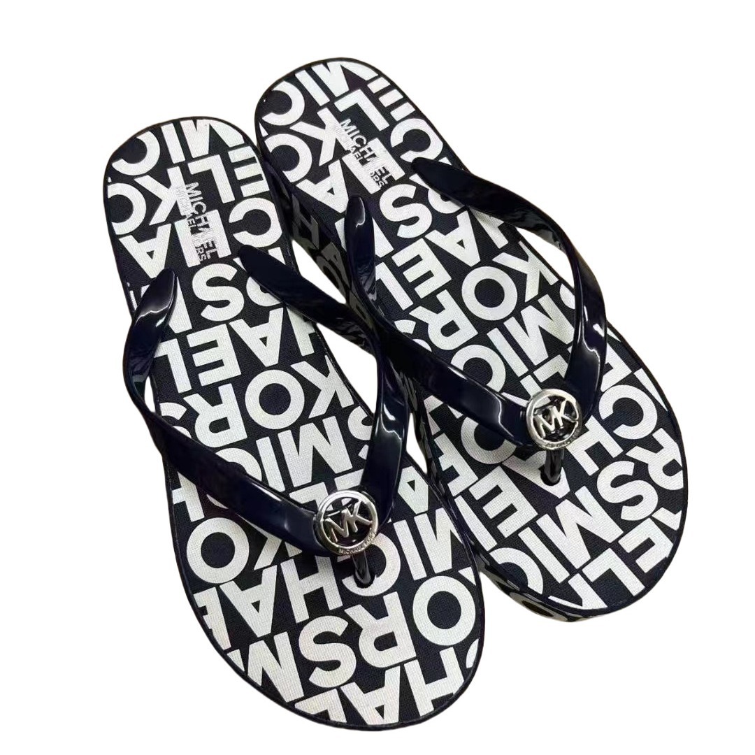 2025夏の欧米の女性の純色の人の字の厚い底の坂と冷たい防水台のスリッパの女性の現物