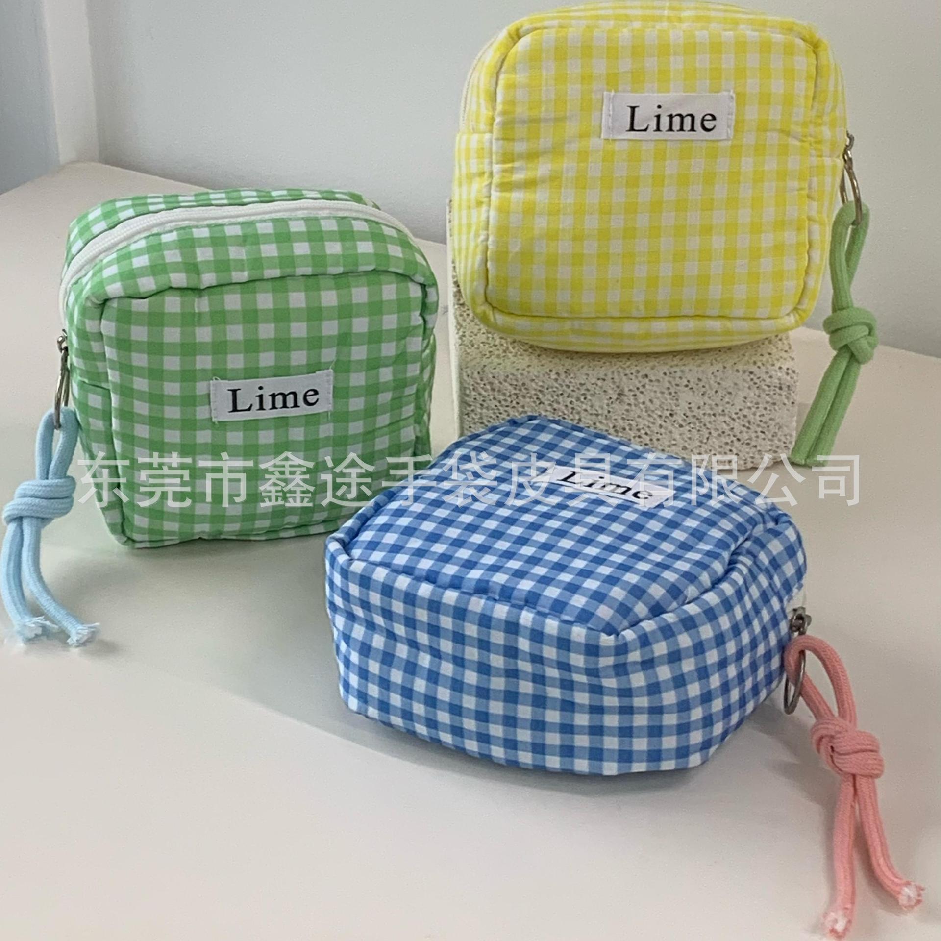 新しい綿チェック柄口紅収納袋多機能月経バッグ小さな新鮮な女の子の小銭入れ
