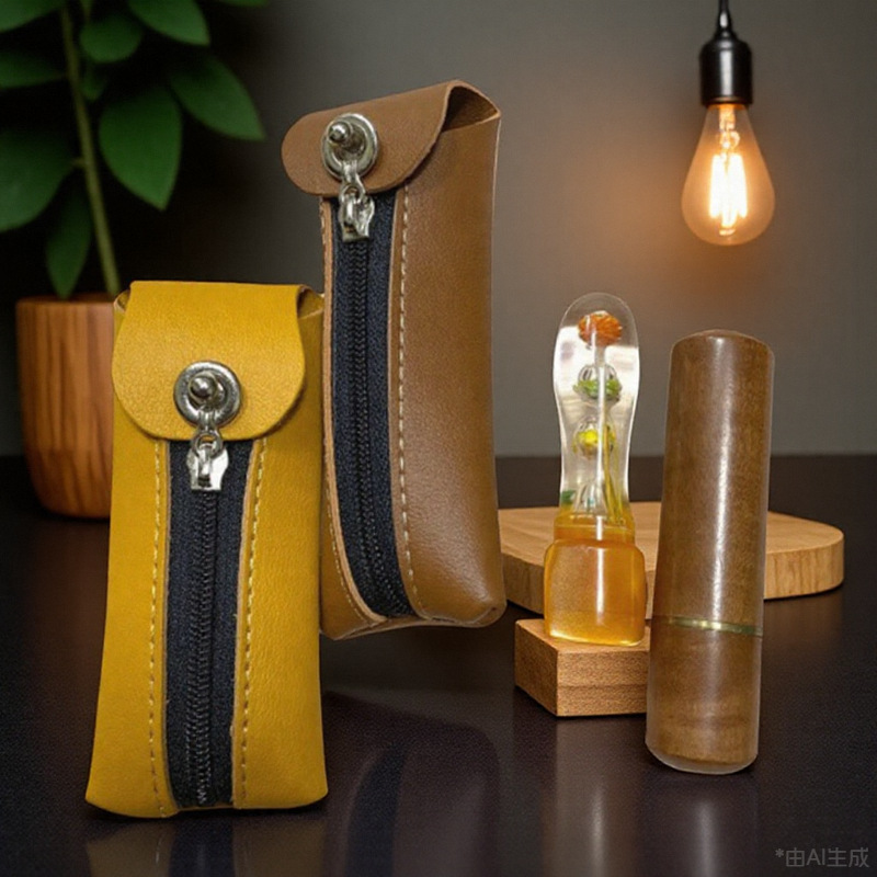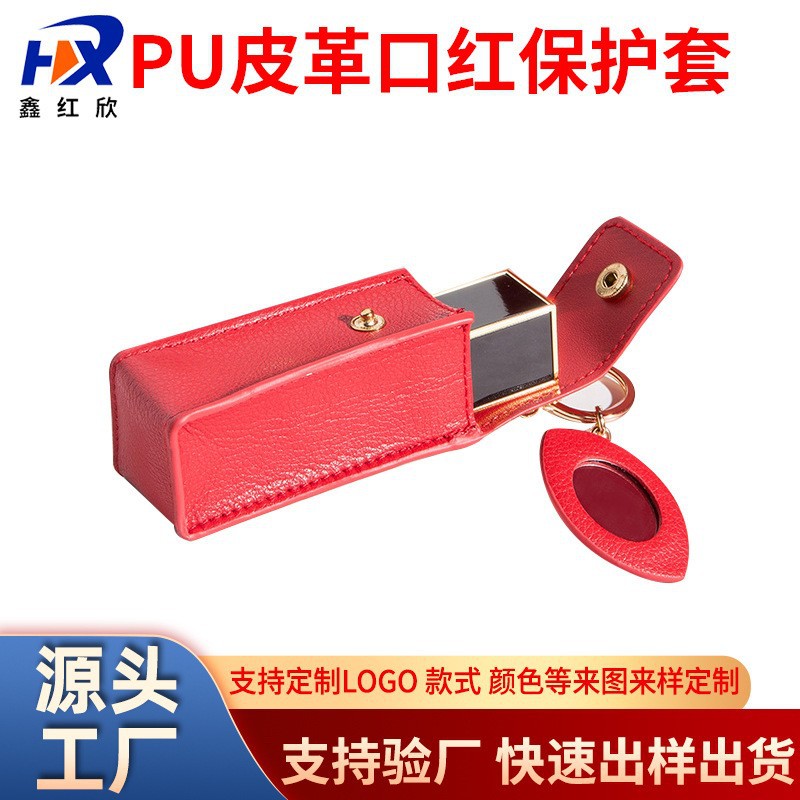 韓国系口紅スタンド革キーホルダー携帯吊り式多機能uディスク保護皮カバーリップクリーム皮カバー
