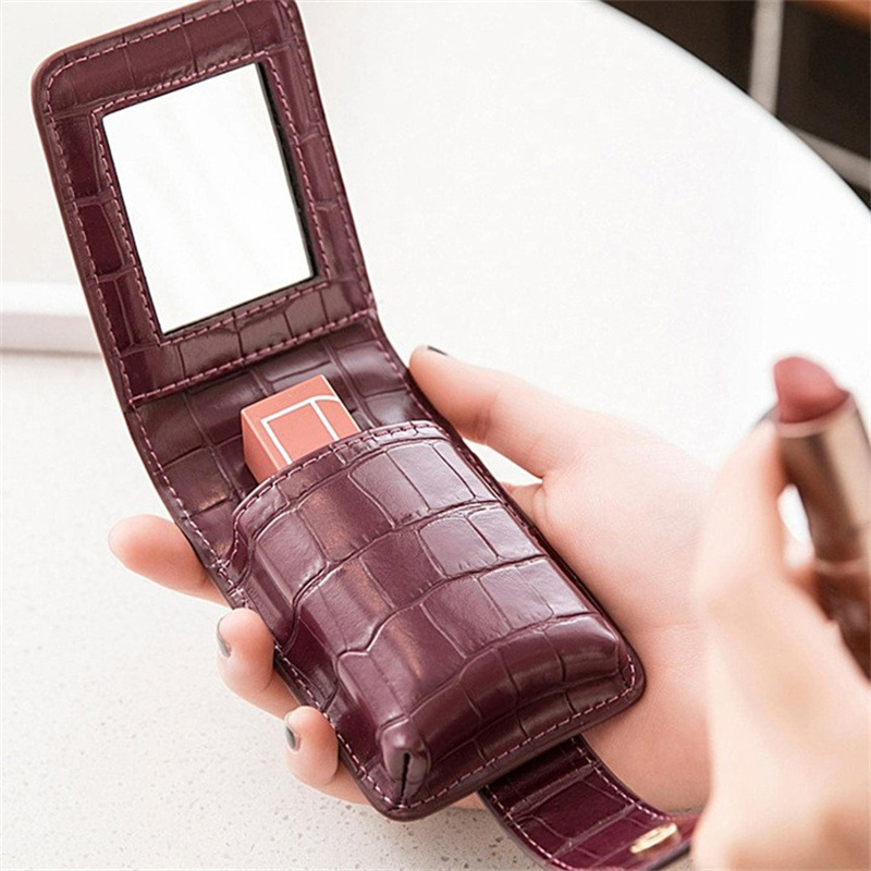 アマゾンの新型女性PUミニ口紅包携帯小型バックルかわいい鏡付き口紅保護ケース