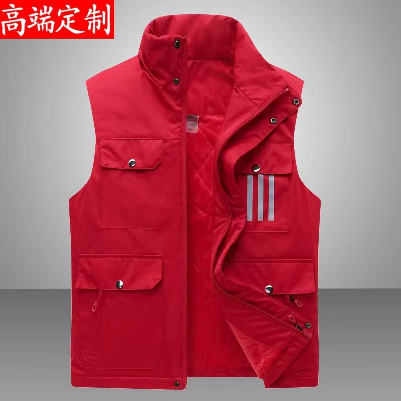 メンズ裏起毛厚手ベスト綿入りベスト多ポケット大きいサイズ保温欧米外貿速達販売