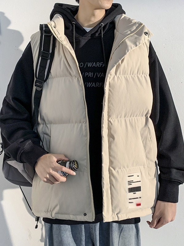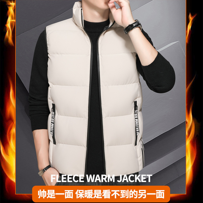 秋冬新作メンズベスト日本トレンドベスト暖かいベスト無地スタンドカラーカジュアルコットンベストジャケット
