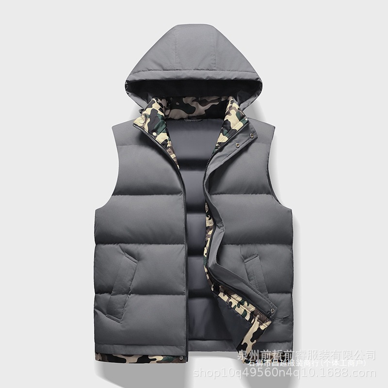 冬の新型帽子付き綿服馬甲青年男性帽の中の迷彩カジュアルなゆるい潮流は防風コートを厚くした