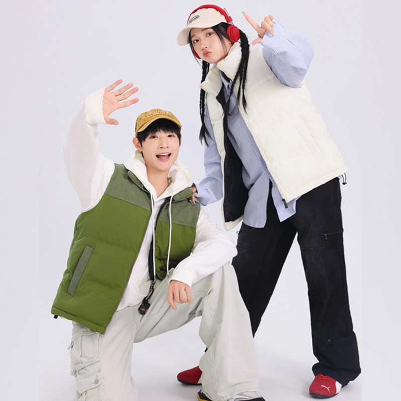 秋冬の新型男女同タイプの綿のベスト男性カジュアルなコンビネーションカラーのファッションを厚くして、袖なしのベストベストを暖かくします。