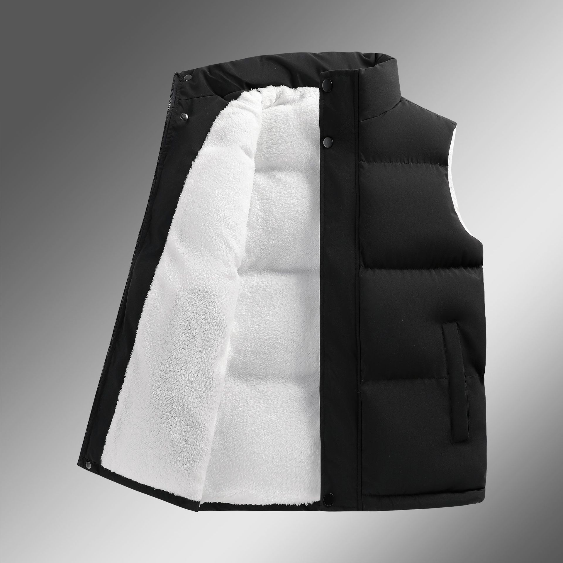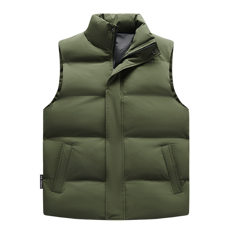 冬の新型羽戎綿馬甲男型純色立襟百合袖なしベスト防寒保温綿服コート男