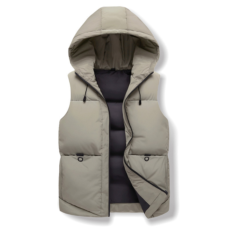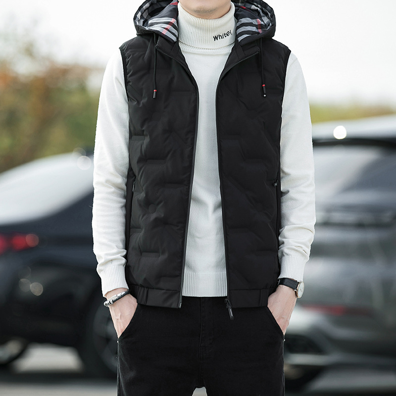 冬の新型馬甲秋冬は袖なしのジッパーを厚くして帽子付きベスト防風男性コート保温綿入れ男