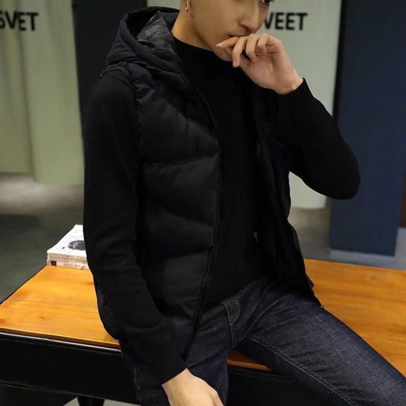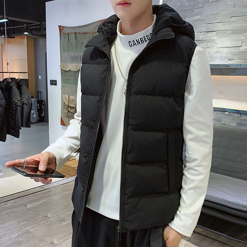 冬の新型馬甲秋冬は袖なしのジッパーを厚くして帽子付きベスト防風男性コート保温綿入れ男