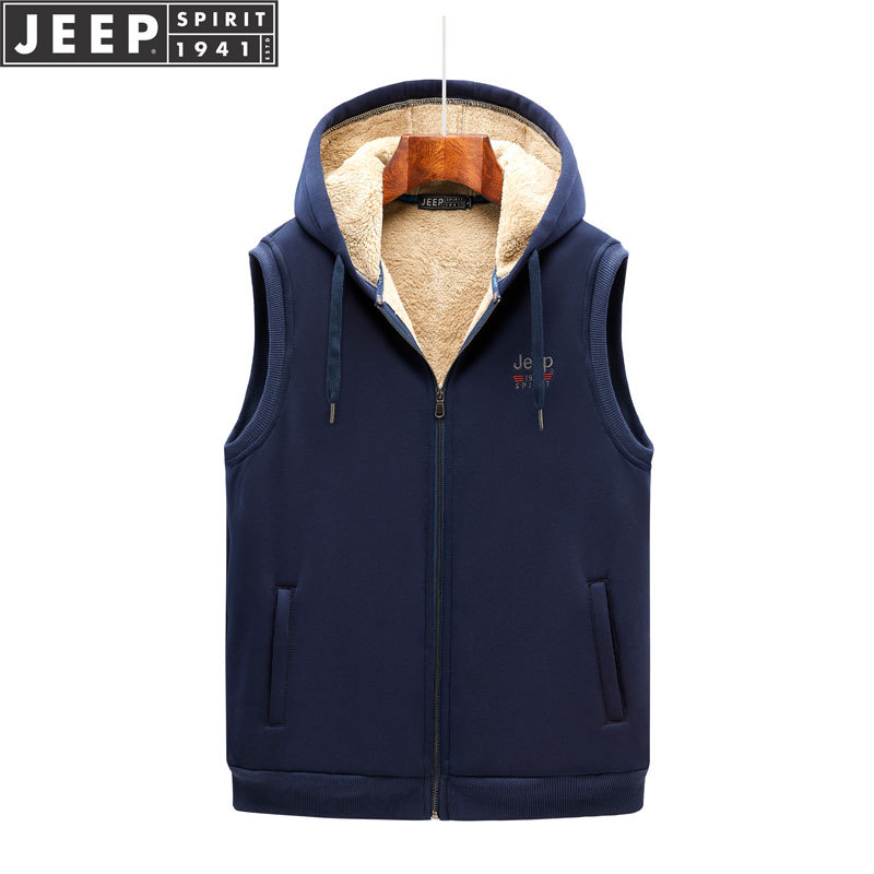 Jeep spiritベルベットベスト男性ゆるい大サイズカジュアルベスト屋外フード付き保温ベスト1608