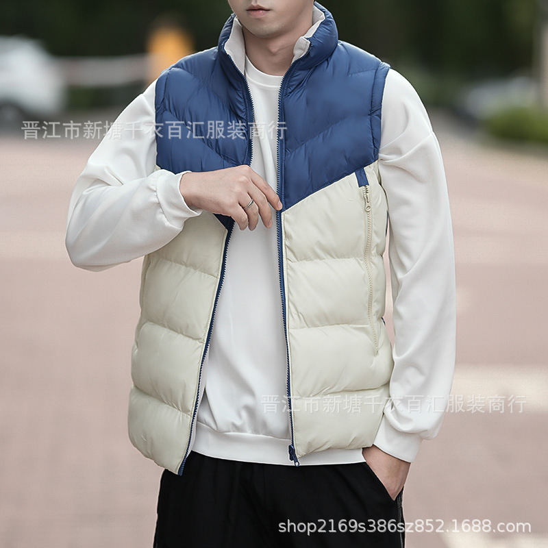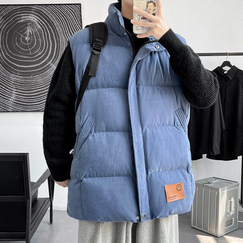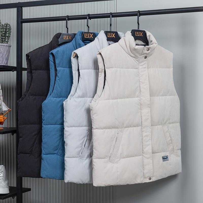 24年秋冬の新型越境秋冬の男性馬甲の純色の馬甲の韓国版のファッションブランドの袖なしの厚い綿