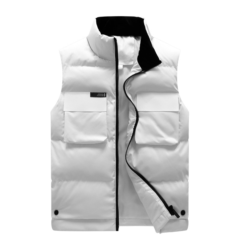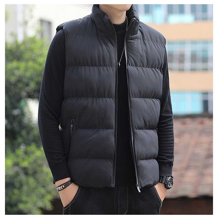 2024秋冬新作カジュアル厚手純色ノースリーブ保温クロスボーダースポーツ綿入れ男スタンドカラー綿ベスト男