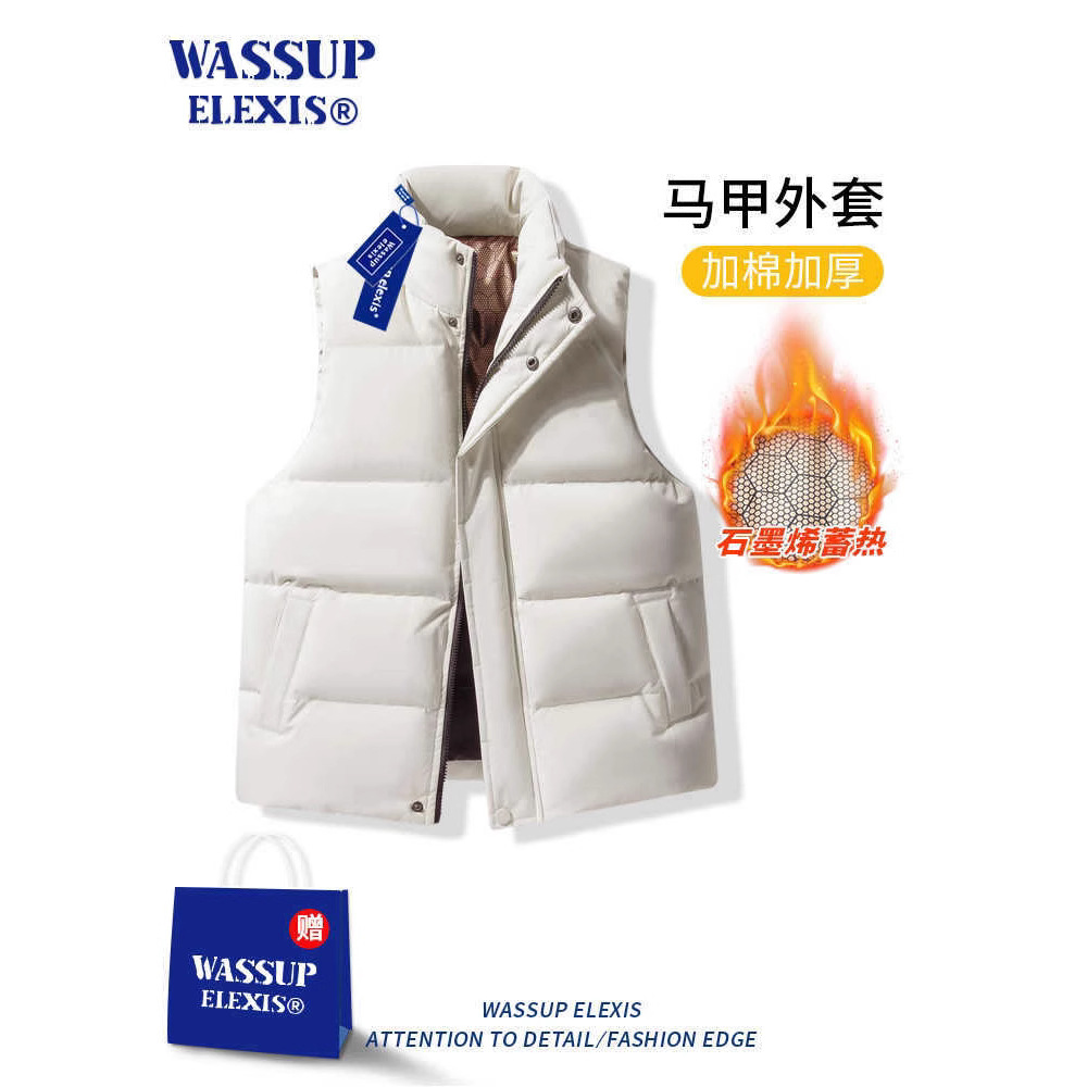 WASSUPグラフェンダウン馬甲男子女子女子秋冬2024トレンドカジュアル厚手ノースリーブ保温ベスト
