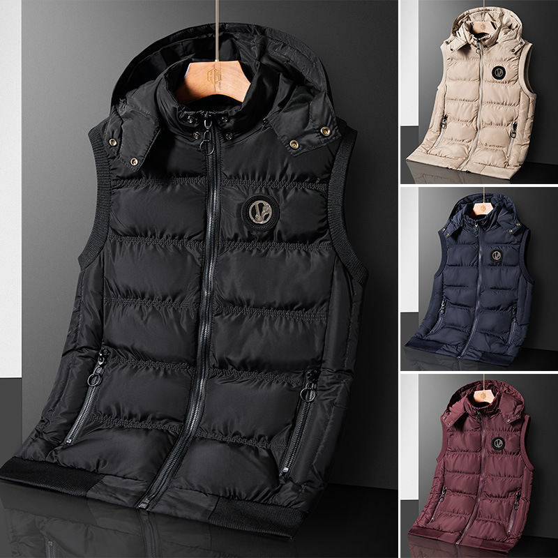 国境を越えて帽子をかぶった馬甲男性春秋冬2024項の潮流外着ベスト軽薄保温綿肩男