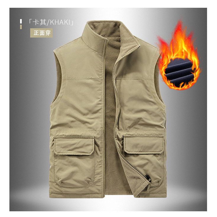新しい秋冬の両面に馬甲の男性とベルベットを着て、暖かいアウトドアスポーツのレジャーでベルベットのベストをつかむ国境を越えた