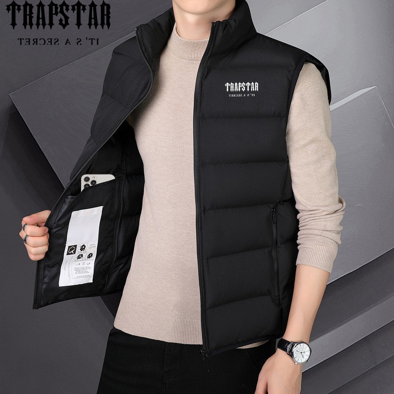 Trapstar秋冬馬甲ファッション男性コートショートショルダー保温ベスト袖なしダウン綿立襟コート