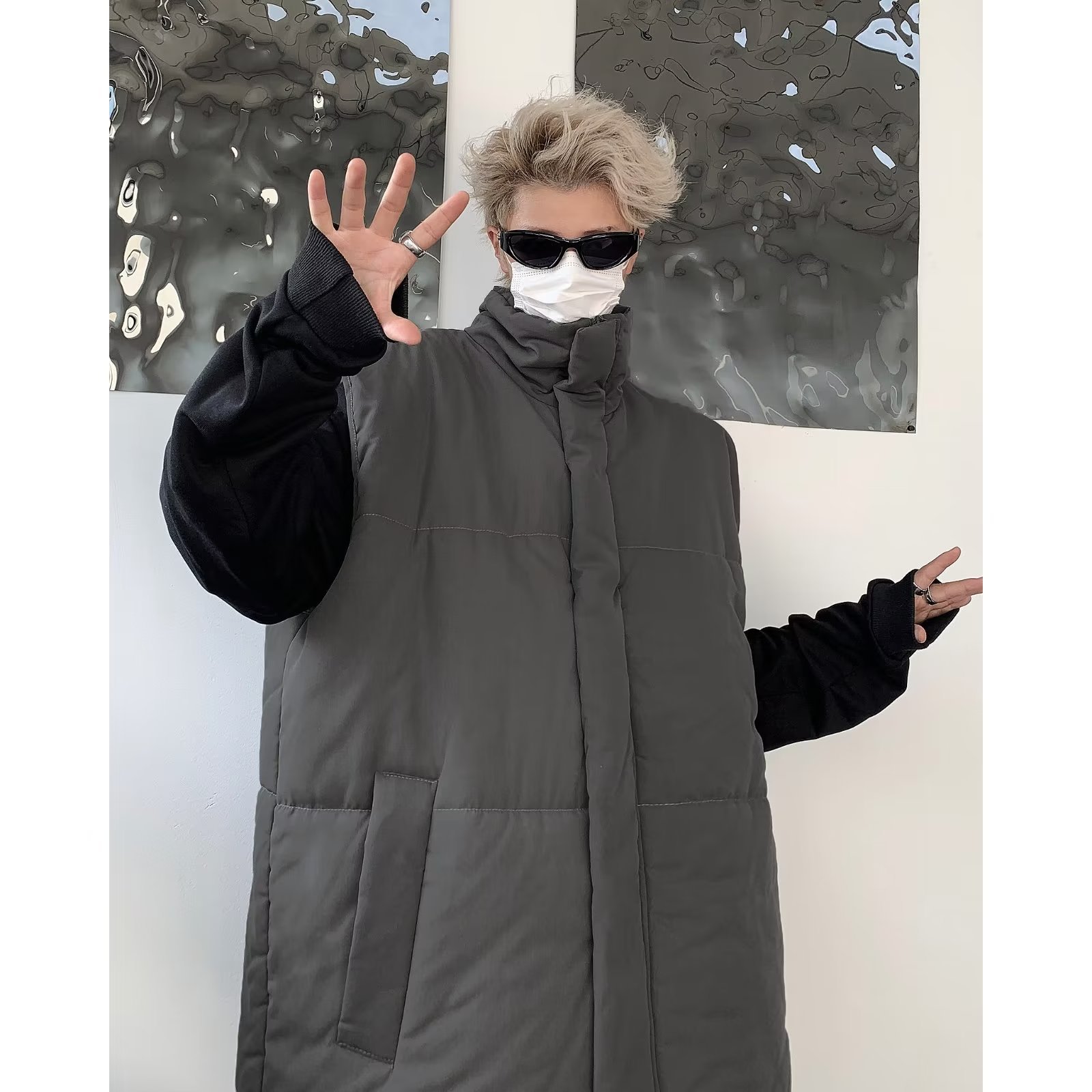 骨付き綿馬甲男は秋冬にファッションを着て帽子を外すことができます。