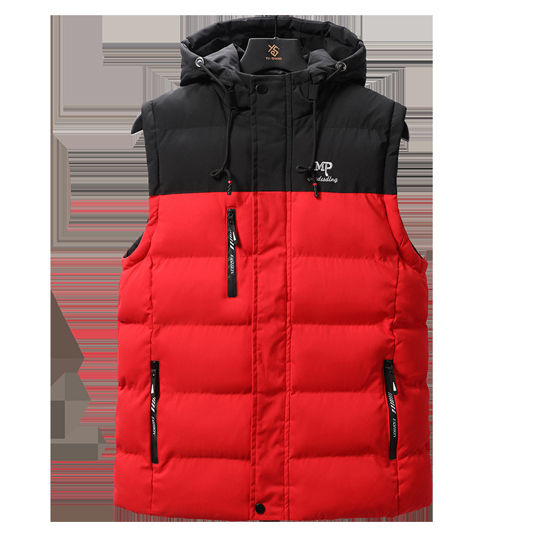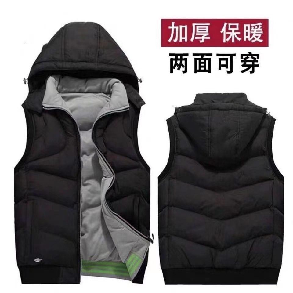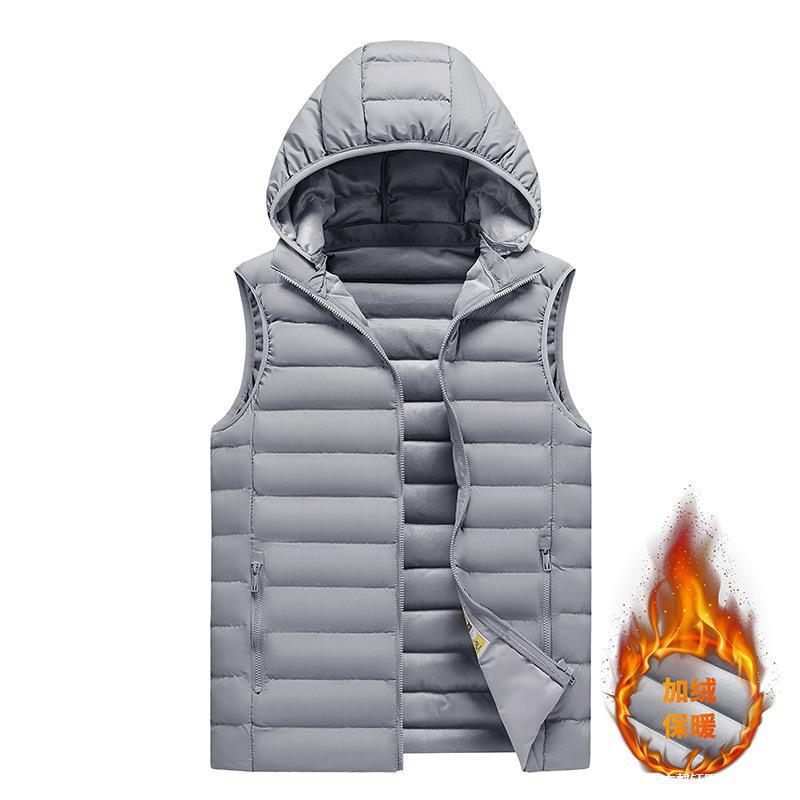 冬の新型馬甲秋冬は袖なしのジッパーを厚くして帽子付きベスト防風男性コート保温綿入れ男