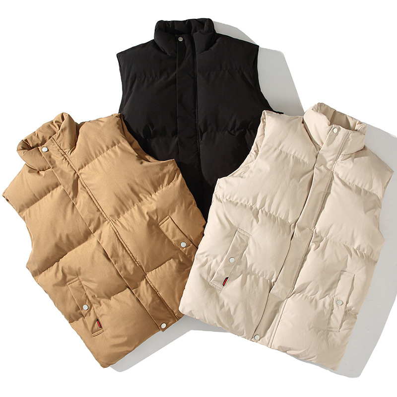 メンズ秋冬純色立襟綿馬甲加毛保温快適コートのファッション