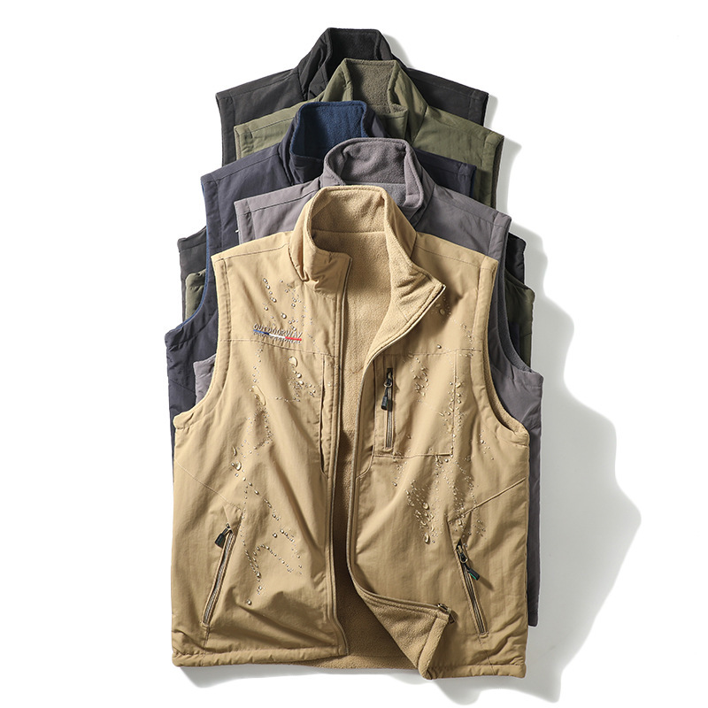 メンズクロスボーダーラージサイズベルベット厚みのあるベスト防風防水外国貿易スタンドカラーベルベットベストコットンベストマルチポケットトレンディ