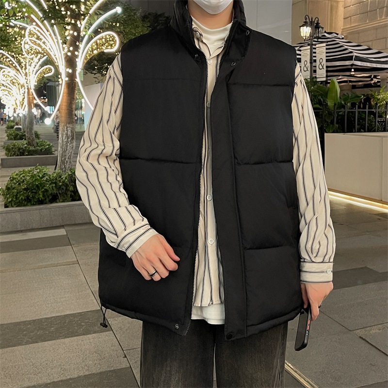 馬甲男秋冬純版生放送好品立襟ダウン綿カン肩修身格好いい青年男性コート