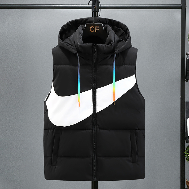 2024秋冬の新型ファッションカップル綿馬甲卸売りは帽子と防寒保温男性ベストの肩を厚くした