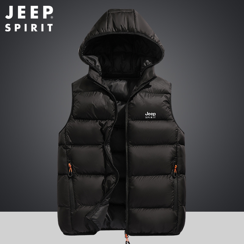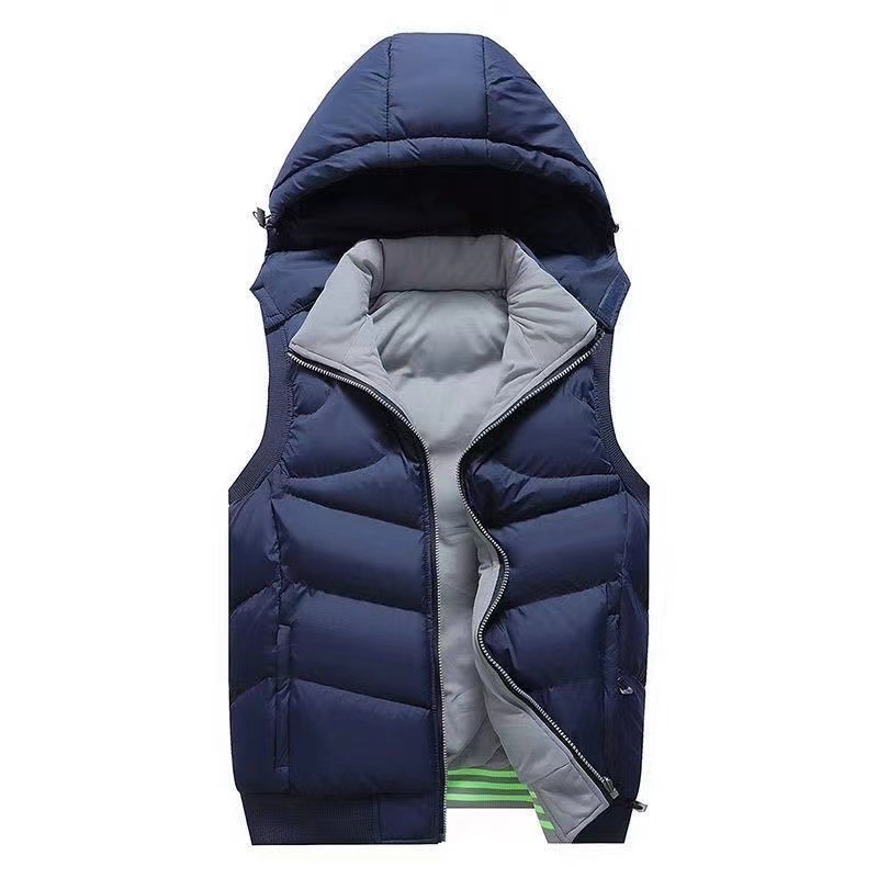 冬の新型馬甲秋冬は袖なしのジッパーを厚くして帽子付きベスト防風男性コート保温綿入れ男