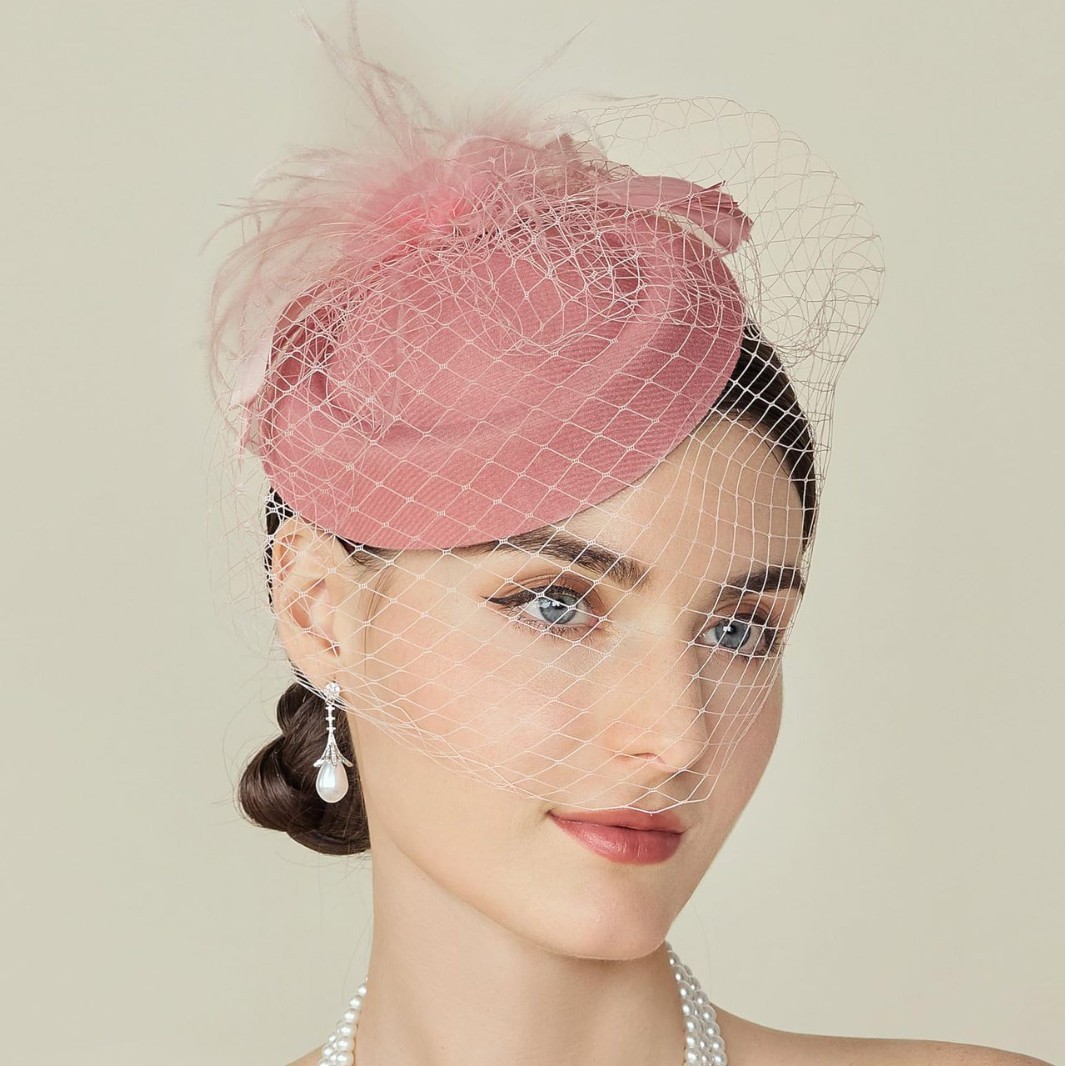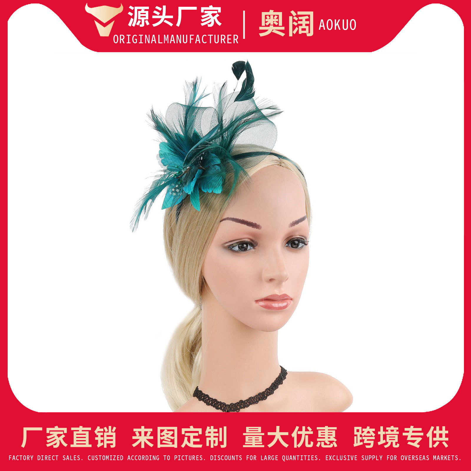 新しいアマゾンメッシュフェザーヘッドギフトハットレトロフェイスベールヘッドギアパーティーパーティーヘアアクセサリーハット