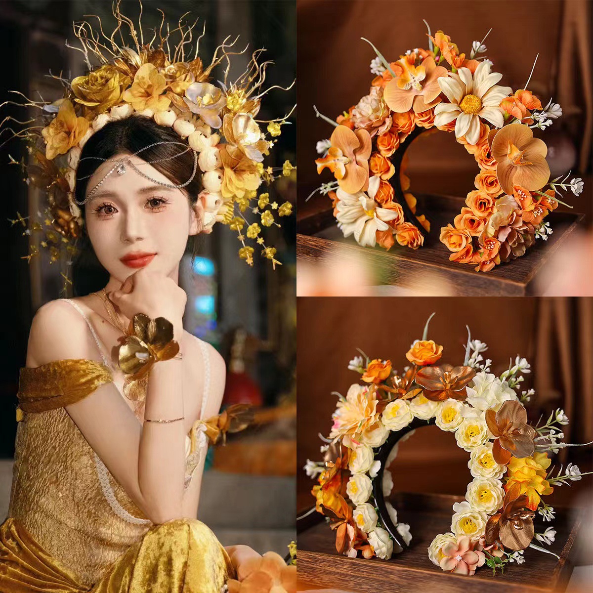 クロスボーダーの新型花輪写真撮影旅行の頭輪の頭飾り森系のウェディングドレスの撮影に出かけます。
