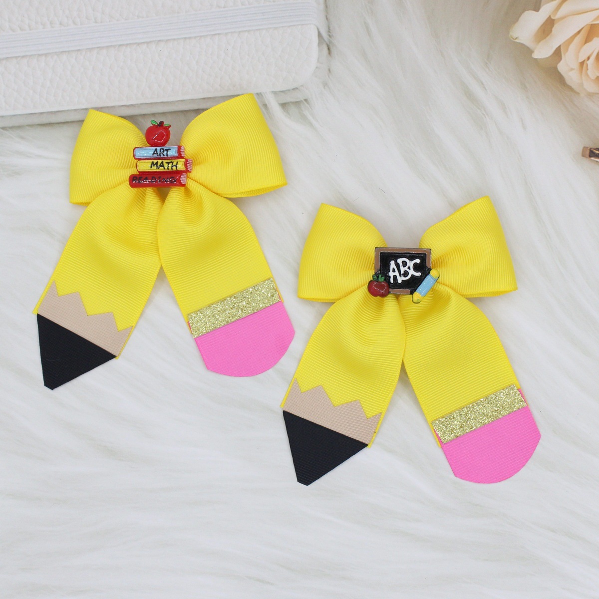 新商品の鉛筆の花のリブは蝶結びのワニのヘアピンを持っています。
