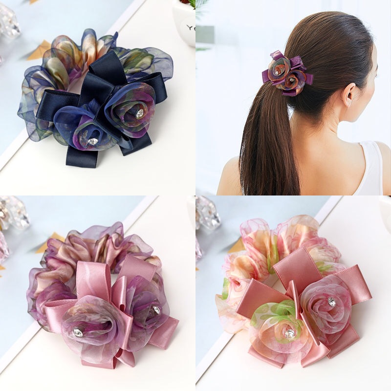 絹糸の布芸の髪の輪のひもは馬尾の髪の縄の団子の頭を刺して髪を巻いてシンプルな韓国版の女性のアクセサリの頭飾りの卸売りをします。