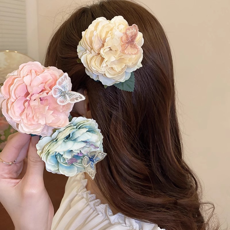 新商品のレトロな文芸リゾート街のヘアピン刺繍の蝶の花の飾りの縁の挟みのシミュレーションの花の前髪のカモの口の挟み