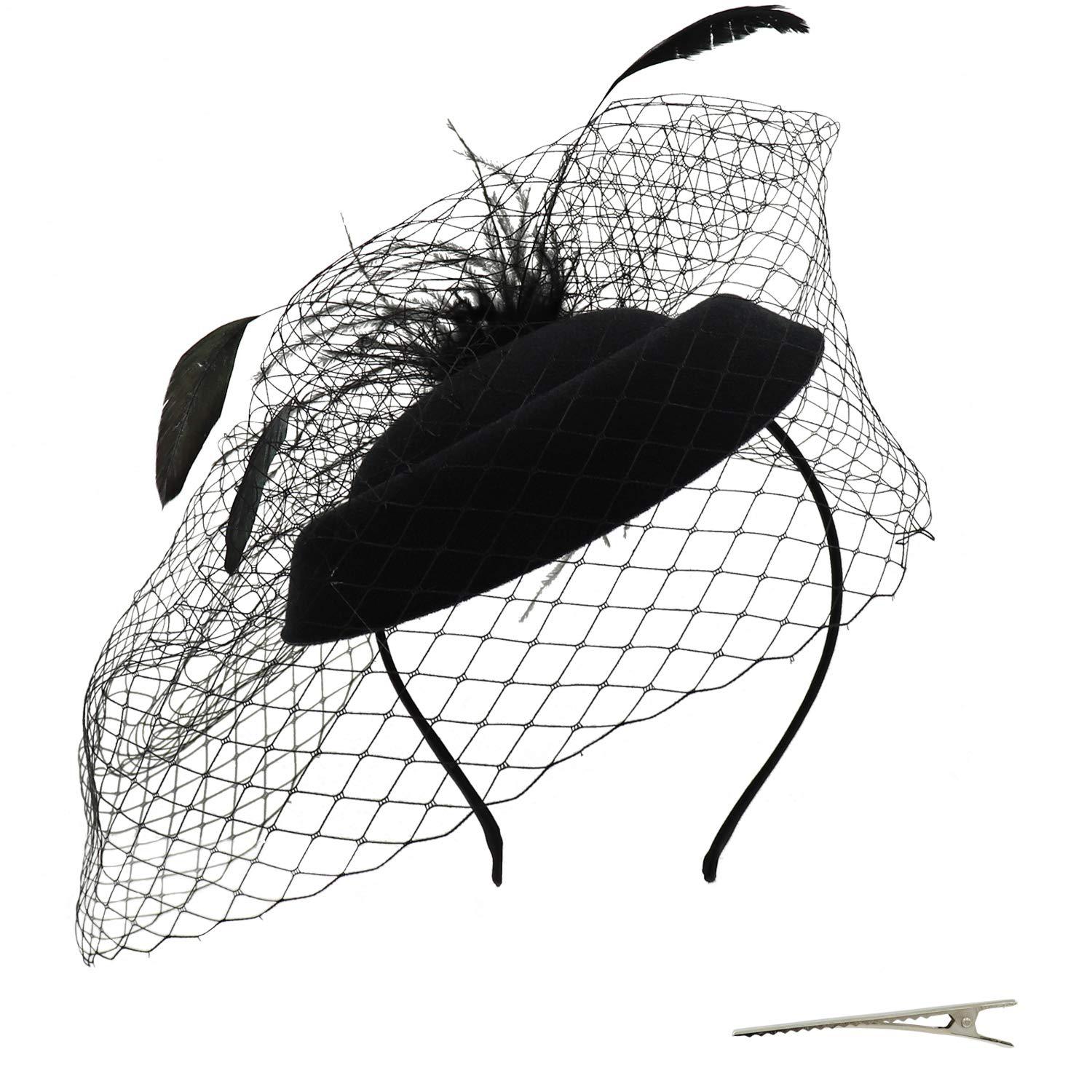 レトロなマスクのヘアピンのベールの小さい礼帽の網の紗の蝶結びの頭飾りの欧米の新婦の頭飾りの羽の頭花のスーツ