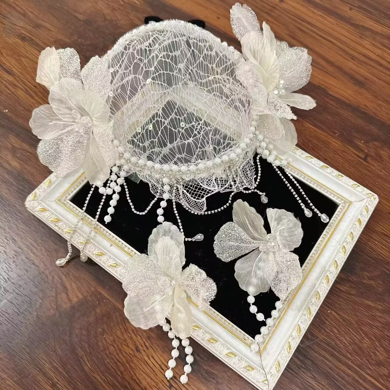 ヨーロッパとアメリカのヘアアクセサリー、ブライダルヘアアクセサリー、羽根飾り、花飾り、レース、ビーズ、手作り、メッシュヘアバンド、帽子、2025年新作