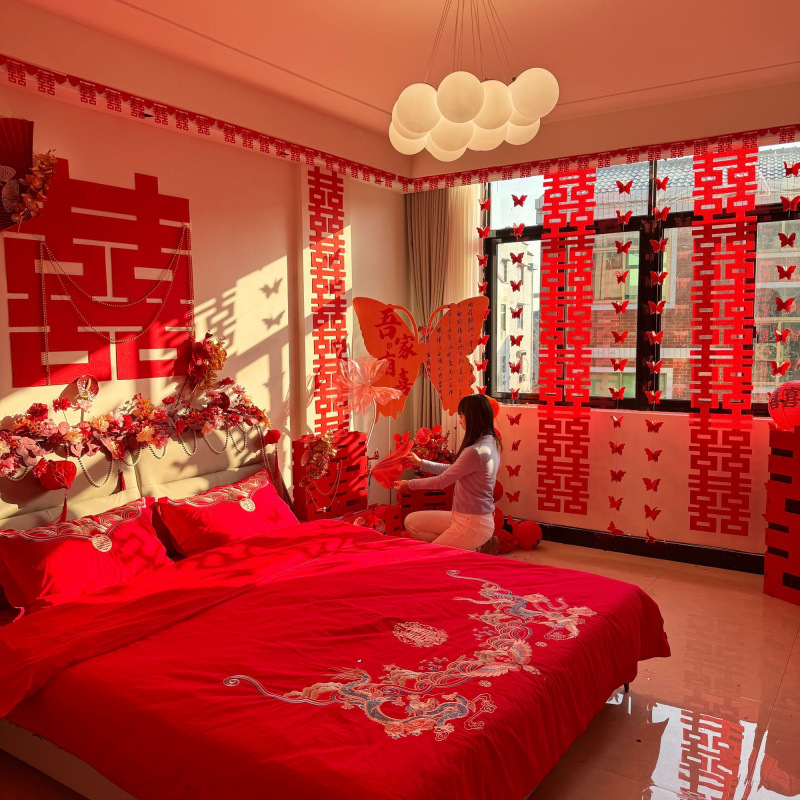Ximanman 結婚式の部屋の装飾金と翡翠の結婚式の男性と女性の寝室のカーテン背景壁の装飾装飾品ベッドサイドの花