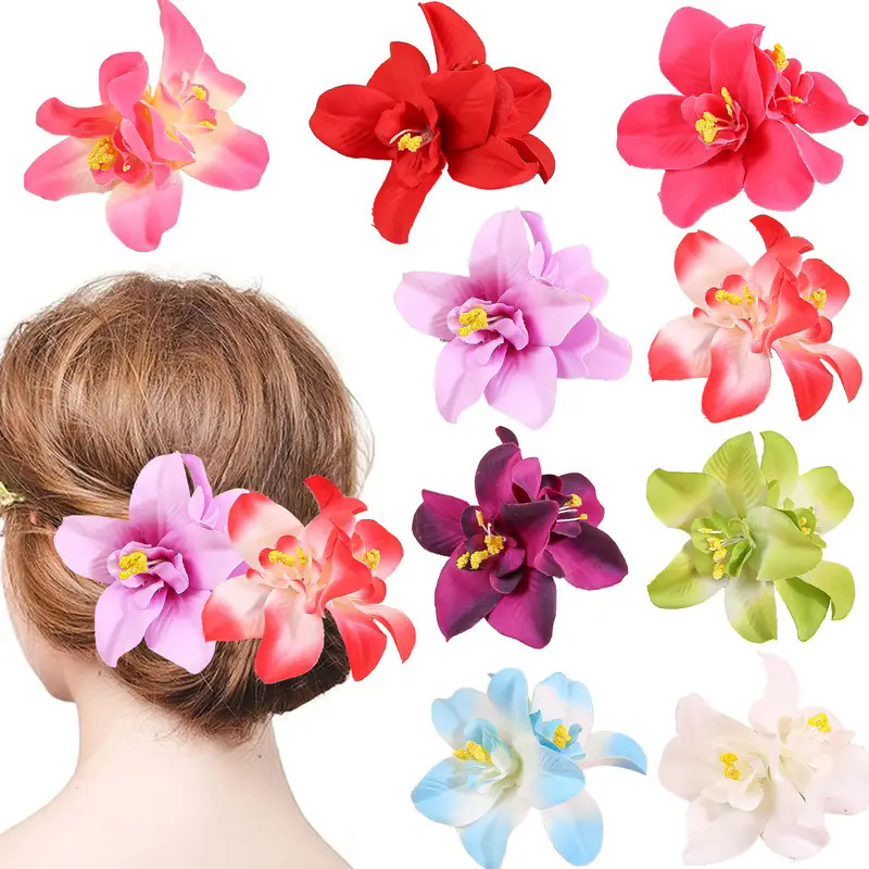 2025人気のランのヘアピンハワイの海辺のリゾート街でレトロな生地を挟んで髪飾りをします。