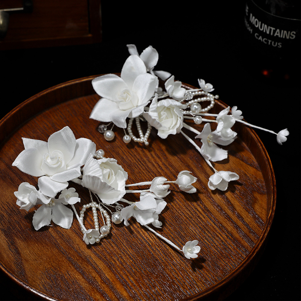 ヘラの新しいオリジナルデザインの手作りの精巧な高級仙気布芸の白い花のヘアピンの新婦の頭飾り