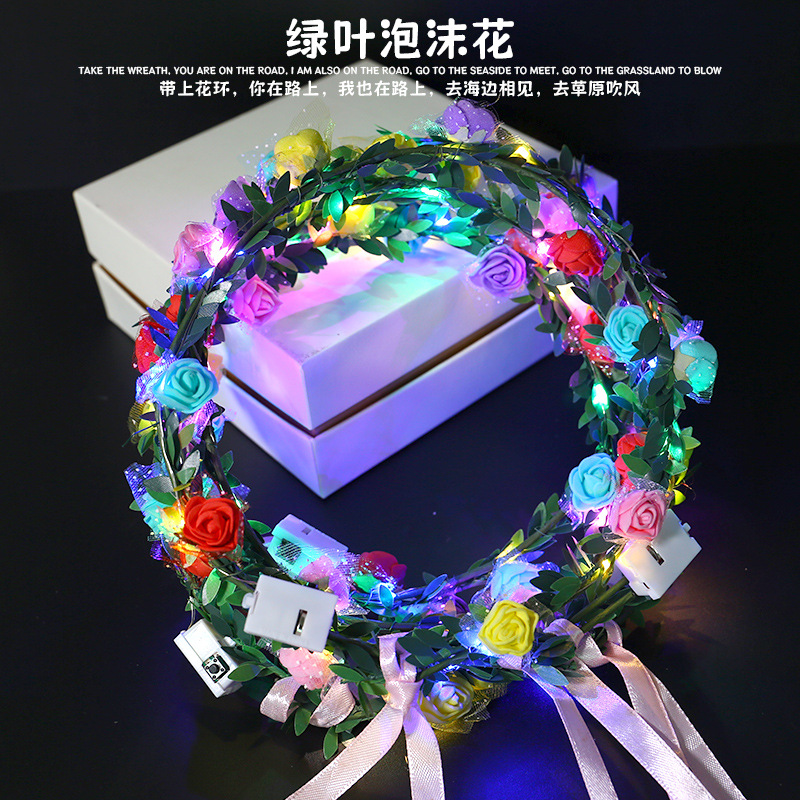 発光花輪ヘッドバンド発光頭飾り緑の葉の花泡花露店イベントホット販売梅の花のおもちゃ