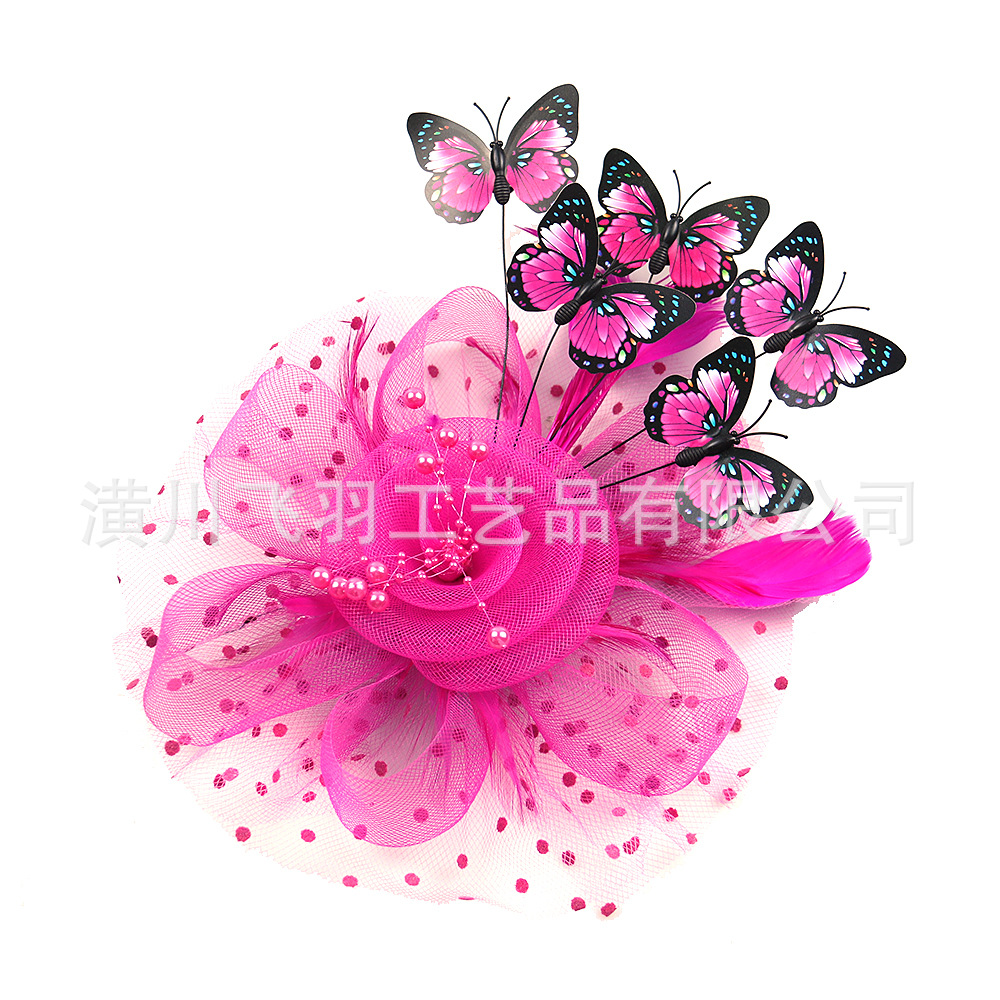 新しいアマゾンヘッドドレスブライダルメッシュフェザーヘッドフラワーレトロ帽子ヘアアクセサリー競馬フェスティバル蝶ヘッドドレスヘッドバンド